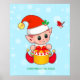 Cute Christmas little elf & red bird Poster