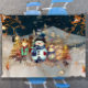 Beautiful Christmas snow hill and dark blue sky Blanket with cute characters and gold elements. Great decorative piece for Christmas table.The squirrels, Snowman, a girl and a baby, a fox, mice, an owl, ravens, and a little bird will bring out the right Christmas spirit. Place it on your table at the Christmas Time. It would make a great Christmas gift or decorative piece. This art piece was painted and is an original artwork.
