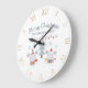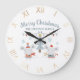This festive Christmas wall clock features an cute winter woodland theme. An image of a two little mice are pictured standing next to a Christmas tree, beneath colorful lights and snowflakes. A "Merry Christmas" greeting is printed at the top, followed by a sample family name. You can personalize the clock to include your own custom name or text. The hours are printed in a gold Roman numeral design.