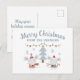 This festive Christmas postcard features an cute winter woodland theme. An image of a two little mice are pictured standing next to a Christmas tree, beneath colorful lights and snowflakes. A "Merry Christmas" greeting is printed at the top, followed by a sample family name. You can personalize the postcard with your own custom name or text.
