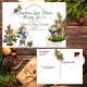 A postcard invitation for a Christmas Open House features watercolor depictions of fully-clothed mice decorating a mouse-sized tree with a cheese star, seeds and nuts while another mouse sits in the shell of a walnut, with an open book. His seat is backed by an evergreen sprig. But house mouses are everywhere and one is climbing on the "C" in "Christmas Open House". He's wearing a yellow shirt and fluffy green pantaloons from which his tail dangles. It is simple to substitute your event details for our placeholders. Just click "Personalize" and get started. The back features the usual postcard format with your return address, a personal message and "Kindly Deliver To:" in the same fonts. In the center is a (small) watercolor scene of two mice sledding in the snow. Two contrasting playful fonts (in black) have been selected for this fun Christmas Party Invitation.