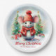 Celebrate in style with this cute Christmas mouse party paper plates. Perfect for decorating your Christmas or holiday party. This watercolor ai art illustration, in cheerful colors, features a cute Christmas mouse and decorated Christmas trees. Playful and charming, it's the perfect way to set the tone for a fun celebration and wish your loved ones a Merry Christmas.