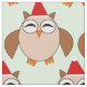 This awesome craft fabric is perfect for all your craft projects. The design features a funny cartoon of a Christmas owl with sleepy eyes, a small orange beak and cute little orange feet. The owl is brown with a cream belly and is wearing a red and white Santa hat ready for Christmas.