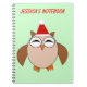 This awesome customizable notebook features a funny cartoon of a Christmas owl with sleepy eyes, a small orange beak and cute little orange feet. The owl is brown with a cream belly and is wearing a red and white Santa hat ready for Christmas. There is customizable text at the top of the notebook allowing you to personalize it for yourself or give it as a gift.