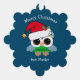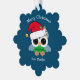 Cute Christmas Owl in Santa Hat Custom Blue Ornament Card