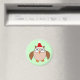 This fun Christmas magnet features a funny cartoon of a Christmas owl with sleepy eyes, a small orange beak and cute little orange feet. The owl is brown with a cream belly and is wearing a red and white Santa hat ready for Christmas.
