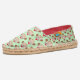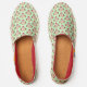 This awesome pair of espadrilles features a funny cartoon of a Christmas owl with sleepy eyes, a small orange beak and cute little orange feet. The owl is brown with a cream belly and is wearing a red and white Santa hat ready for Christmas.