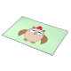 This awesome placemat features a funny cartoon of a Christmas owl with sleepy eyes, a small orange beak and cute little orange feet. The owl is brown with a cream belly and is wearing a red and white Santa hat ready for Christmas.