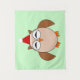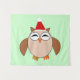This awesome tapestry features a funny cartoon of a Christmas owl with sleepy eyes, a small orange beak and cute little orange feet. The owl is brown with a cream belly and is wearing a red and white Santa hat ready for Christmas.