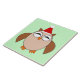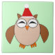This awesome tile features a funny cartoon of a Christmas owl with sleepy eyes, a small orange beak and cute little orange feet. The owl is brown with a cream belly and is wearing a red and white Santa hat ready for Christmas.