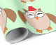 This awesome wrapping paper features a funny cartoon of a Christmas owl with sleepy eyes, a small orange beak and cute little orange feet. The owl is brown with a cream belly and is wearing a red and white Santa hat ready for Christmas.
