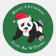 Cute Christmas Panda Bear Santa Hat Custom Green Classic Round Sticker
