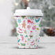 Bring a touch of whimsy to your holiday table with these adorable paper cups featuring a colorful hand-drawn doodle pattern of stockings, ornaments, gifts, and gingerbread. The sketch-style artwork, featuring shades of red, green, pink, blue, and yellow, adds a cheerful charm to every sip.