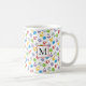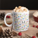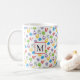 Cute Christmas pattern of balls and gifts coffee mug with monogram. This cute design displays Christmas ornaments and gifts that form a pattern and your monogram.
