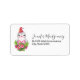 Address labels with a cute and whimisical design featuring an adorable penguin wearing a red santa hat. Standing behind a bouquet of flowers with pink and white striped candy canes.