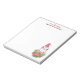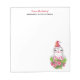 A notepad with a cute and whimisical design featuring an adorable penguin wearing a red santa hat. Standing behind a bouquet of flowers with pink and white striped candy canes.