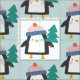 Cute Christmas Penguin Pattern in Teal Mint Fabric