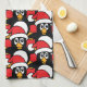 Cute Christmas Penguins Pattern Red Kitchen Towel