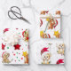 Celebrate festive winter holiday season with this cute Christmas gift wrapping paper set. It features three different pattern designs with adorable Christmas pets: one sheet has two Christmas kitties, a red star and two puppies pattern, the second sheet has a seamless pattern of a kitty holding a yellow star, and the third sheet has a seamless pattern of a cute Christmas puppy sitting.