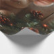 Decoupage wrapping paper featuring a digital oil painting of a cute pig surrounded by pine cones and pine tree garland with Christmas lights. The wood background adds a rustic vibe to the artwork.
