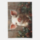 Cute Christmas Pig Rustic Painting Kitchen Towel