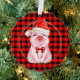 Cute Christmas Pig With Buffalo Plaid Red Funny Ornament Card
