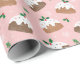 Cute christmas puddings on light pink wrapping paper