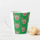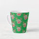 Have a little fun with your coffee or hot cocoa with this cute Christmas reindeer cartoon pattern latte mug. Cartoon reindeer character pattern with red shinny nose on a holiday green background. If you need help to customize it send me an email and I would be happy to help. designsbykatz@gmail.com Happy Holidays!