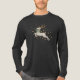 Elegant white and gold reindeer design featuring delicate gold stars and a festive Christmas holly adorning its neck. This charming illustration is beautifully crafted and would make the ideal long-sleeve shirt for the holiday season.