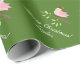 Cute green Christmas wrapping paper for kids and adults. Cute winter Holiday design with little pink bird on a branch wearing a Santa Claus hat. Trendy Xmas gift wrap for men, women and children (boys and girls). Personalizable with custom name and seasons greeting like Merry Christmas or Happy Holidays. Background color is customizable. Script typography template. Available in matte and glossy. Animal illustration. Change quantity to get the cheap bulk discount price.