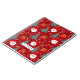 This design features a cute face of Santa Claus and reindeer faces with Christmas trees decorated with ornaments as snow falls, on a burgundy red background. Personalize by editing the text in the text box.