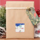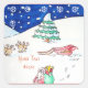 This funny little Christmas snow scene on this square customizable christmas sticker shows a cute smiling santa with his toy fiilled green sack over his shoulder. Santa's funny reindeer are grazing close by the christmas sliegh. There’s a snow covered tree on the small hillside and snowflakes gently fall against the winter blue sky. The original snow scene is painted in water colour. This original festive sticker is customizable for you to personalize. The original snowman illustration is painted in water-colour.