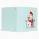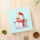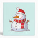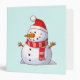 A cute Christmas snowman who is kind of chubby and jolly wearing a striped scarf and a red christmas hat. Festive and fun.