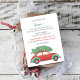 Cute Christmas Tree Car We've Moved Holiday Moving announcement Postcard with Red Vintage Car and Decorated Christmas tree on top