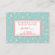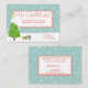 NewParkLane - Business gift certificate, featuring a cute little decorated Christmas tree illustration with snow on top, against an aqua green snowy background. The texts are in a fun handwritten font in red with cute little hearts as dots on the letter i.
