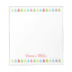 This cute notepad features a border of bright, colorful Christmas trees in green, blue, red and pink. Personalize the custom name for the perfect stocking stuffer.