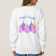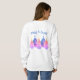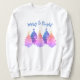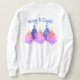 This fun Christmas sweatshirt is decorated with whimsical Christmas trees in shades of pink, blue, and purple.