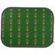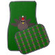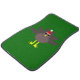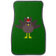 This awesome car mat set features a funny cartoon of a Christmas turkey with big black eyes, a small yellow beak and tail feathers sticking up. The feet are facing in opposite directions making the turkey look clumsy. The turkey is wearing a red and white Santa hat and is ready for Christmas.
