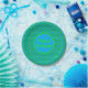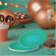 This awesome set of paper party plates features a cute Christmas Sea Turtle with a green shell and 4 legs. The turtle is wearing a festive red and white hat. It has cute black and white eyes and a tiny green tail. The outer section of the shell is decorated with alternating holly leaves and berries and pretty red poinsettia flowers.