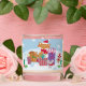 Adorable Christmas winter scene of a fox, squirrel and mouse celebrating.