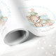 Cute personalized Christmas Wrapping Paper in soft blue, beige and green, with the cutest baby bear and Christmas gifts. Easily personalize the text. - Kate Eden Art