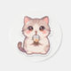This adorable chubby cat sticker features a kawaii-style kitty with big sparkling eyes holding a tiny cup of bubble tea. Designed in soft pastel colors with a thick white die-cut border, this sticker is perfect for decorating laptops, water bottles, journals, planners, and phone cases.
