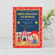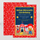 Cute Circus Tent and Boy Clown design with monkey juggling balls, elephant and circus arena background with red stars background