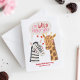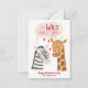 Cute classroom Valentine's Day card featuring a hand-drawn illustration of an adorable zebra and giraffe. Personalize the front of the card by adding your name at the bottom. The card reverses to display a pink heart pattern.
