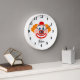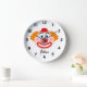 Cute clown face wall clock for kid's room. Funny mime cartoon with custom name. Add your own text. Colorful drawing.