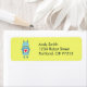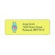 Cute robot return address label with a cartoon illustration of a blue clumsy cartoon robot holding a plate with a heart on bright yellow background. This robot label has bright, cheerful colors. It is suitable for kids and geeks who love robots and cute illustrations.
