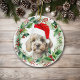 Cute Cockapoo Puppy Holly Wreath Christmas Ceramic Ornament