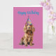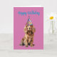 This adorable Cocker Spaniel dog birthday card includes a cute spaniel dog in a birthday hat graphic as well as a custom saying on the inside. This design also includes a magenta background. Enjoy this Cocker Spaniel birthday card!