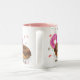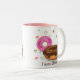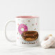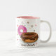 The mug is modernly designed with cute pastel blush pink and a big yummy glazed donut with colorful sprinkles on the front and back. text is in brown trendy hand-lettered script font. Makes a great gift idea for a donut lover! Click personalize template option and enter your text.