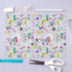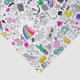 So much fun in one print! This pattern is a black and white cartoon sketch with colorful touches throughout. Features pieces like rainbow clouds, flamingos, donuts, cupcakes and ice cream, 80s icons, skateboards, anchors, sneakers, cacti, mustaches, cameras and SO MUCH MORE!!! Great for an 80s party, or just a ton of every day fun.